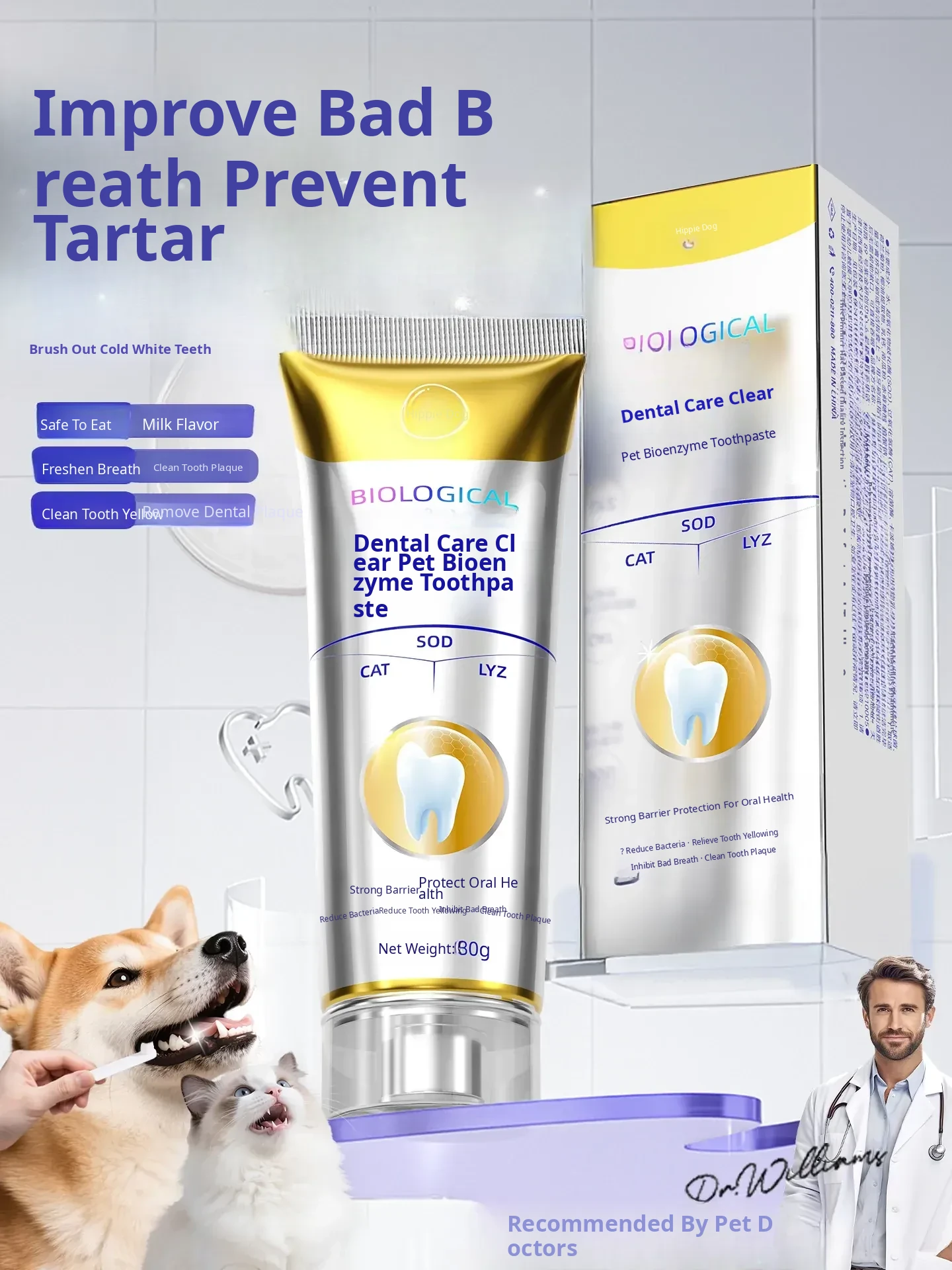 Pet Toothpaste and Toothbrush Set for Dogs and Cats - Edible Formula to Freshen Breath and Remove Tartar for Puppies and Kittens. Keep Your Pet's Smile Healthy!