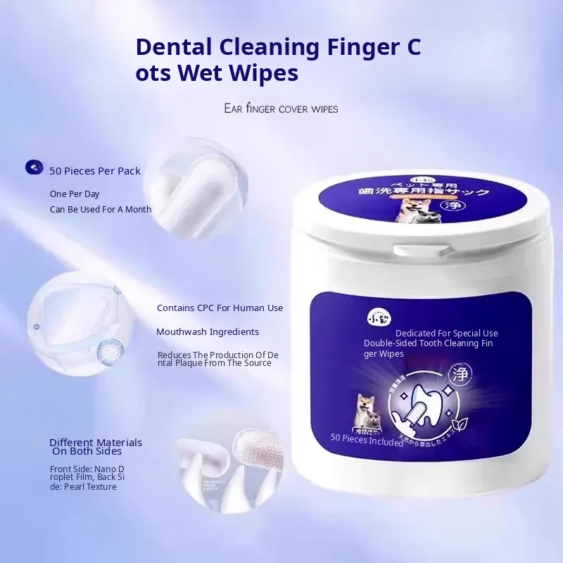 【Exclusive Experience】Hippie Dog Dual Action Dental Finger Cots - 50 Pieces per Box for a Healthier Smile