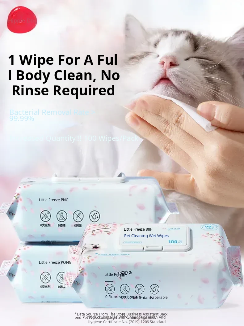 Hippie Dog Pet Wet Wipes - Waterless Cleaning Solution for Dogs and Cats, Perfect for Paws and Bottoms, Essential Hygiene Product for Your Furry Friends